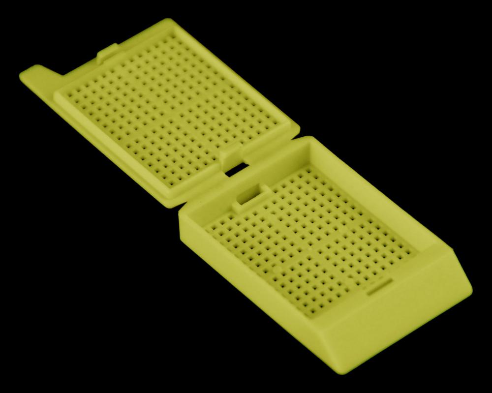 Кассеты изготовлены из высококачественного медицинского полипропилена, устойчивого к воздействию высоких температур, органических растворителей (ксилола, толуола) и агрессивных реагентов на всех этапах проводки. Физическая связь кассеты с крышкой через гибкую перемычку гарантирует их идеальное совпадение, предотвращая случайную потерю крышки и обеспечивая надежную фиксацию самого мелкого биопсийного материала внутри. Специальная конструкция не мешает свободной циркуляции жидкостей.